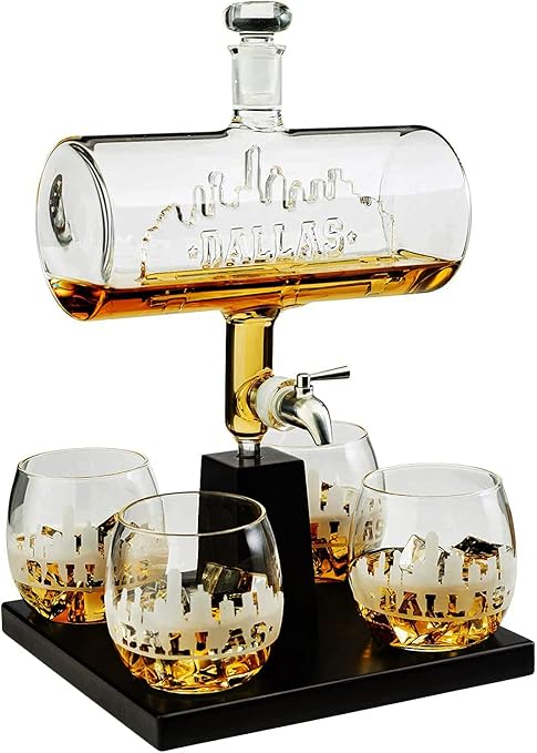 Amazon Com Dallas Whiskey Decanter Dispenser And 4 Liquor Glasses Whisky Decanter Glass Set Dallas Themed Gift City Themed Gift Texas Decanter Set Cowboys For Men Dallas Texas